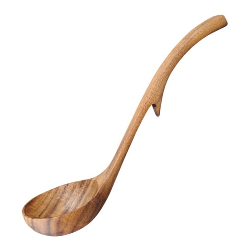 お鍋のフチに引っ掛けられる天然のアカシア材のお玉(大)です。 木製なので柄が熱くなりにくく、お鍋を傷つけにくいです。 ※天然素材を使用した製品の為、色・木目は若干のばらつきが出る場合がございます。 |