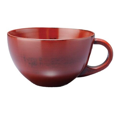 スープカップ 木製 340ml 漆 天然木 持ち手付き 食器 朱 朱