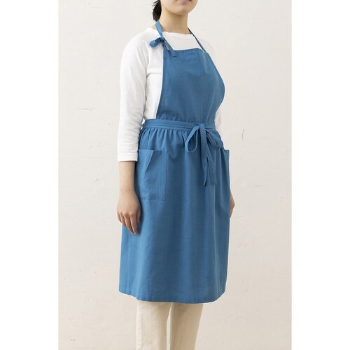 エプロン atelier Nuuit 綿麻ウエストギャザーエプロン ブルー