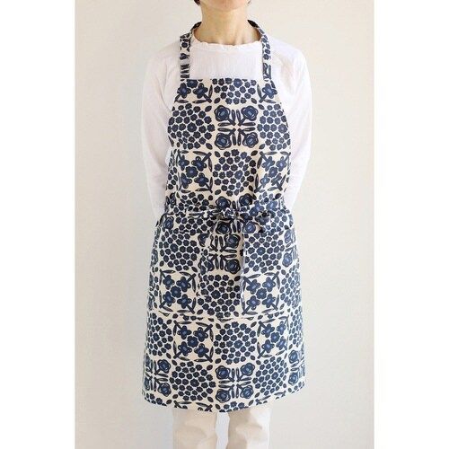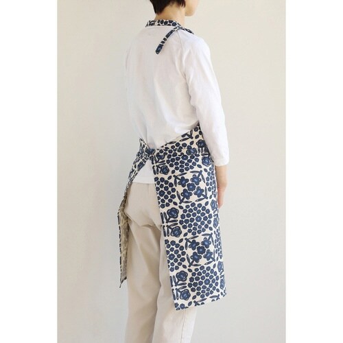 エプロン atelier Nuuit 綿麻プリントショートエプロン ネイビー