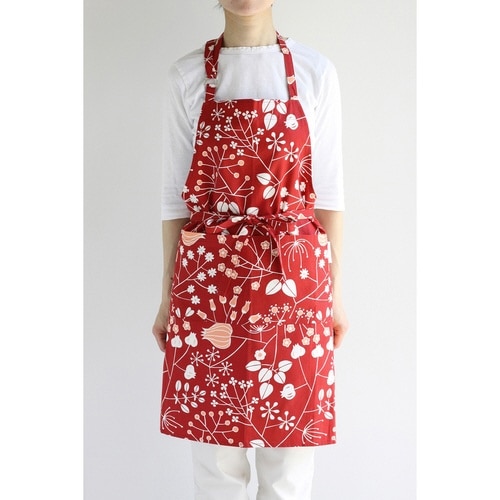 エプロン atelier Nuuit フラワ―プリント ショートエプロン レッド
