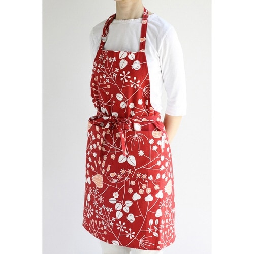 素朴な北欧風プリントが優しい雰囲気のエプロンです。 使いやすい定番の首掛け型です。 軽快な印象のショート丈です。 体格に合わせて、首紐の長さを調節出来ます。 |