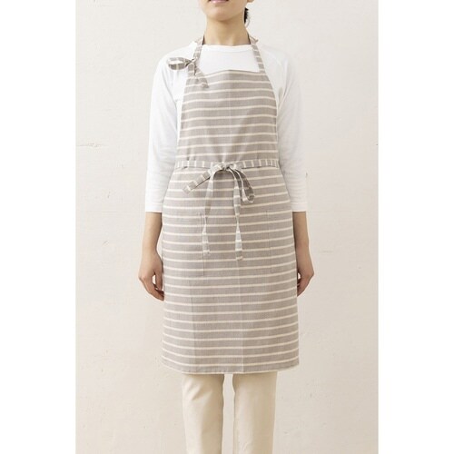 エプロン atelier Nuuit 綿麻ボーダーエプロン グレー