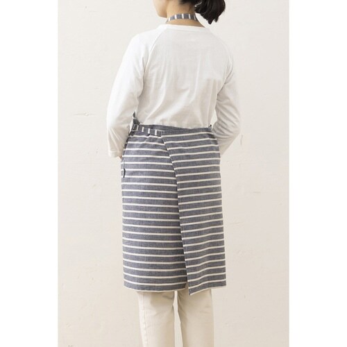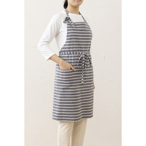 エプロン atelier Nuuit 綿麻ボーダーエプロン ネイビー