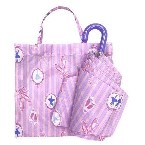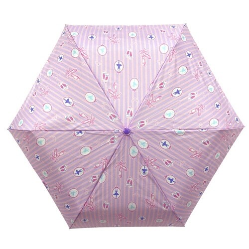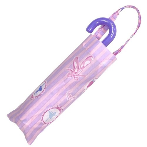 バレリーナやバレエシューズが描かれた、手開き式の折りたたみ傘です。 親骨55cmです。 開閉ボタンはお子様が手を挟まないよう、安全ストッパー付きです。 軽くて錆びにくく、丈夫な造りです。 |