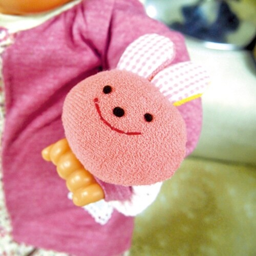 ママの肌の感触に似た柔らかくて、やさしい手触りのガラガラです。 安心の日本製で、何十年も知育玩具を作り続けている職人さんが、ひとつひとつ丁寧に仕上げています。 赤ちゃんの手足に付けられます。 |