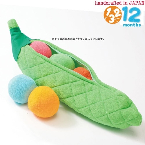 カラフルなお豆がかわいい、大サイズのさやえんどうです。 安心の日本製で、職人さんがひとつひとつ仕上げているハンドメイドです。 |