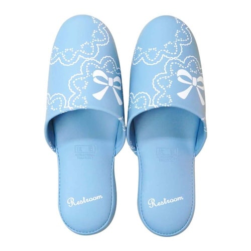 対応サイズ約25cmまでのビニール製スリッパです。 レースとリボンが描かれたデザインです。 撥水性があるので汚れてもサッと拭けてお手入れ簡単です。 |