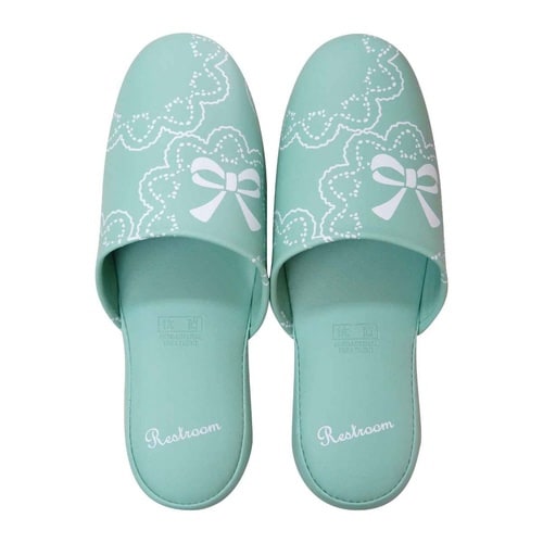 対応サイズ約25cmまでのビニール製スリッパです。 レースとリボンが描かれたデザインです。 撥水性があるので汚れてもサッと拭けてお手入れ簡単です。 |