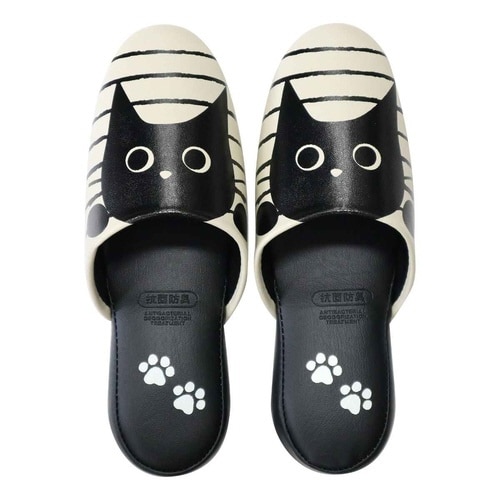 トイレスリッパ 拭けるスリッパ ネコフェイス ブラック