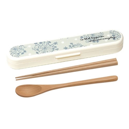 木のぬくもり感じるお箸とスプーン ケース付きで持ち運びに便利 使いやすい18cmのお箸とスプーン 開けやすくカチッと音がして閉めやすい シリーズで揃えられる |