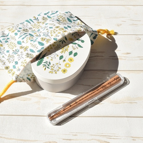 少し大人な花柄の「Hill&Fields(ヒル&フィールズ)」シリーズのランチ巾着です。 植物モチーフの線画風のイラストと甘くないカラーリングが魅力で、ランチタイムに華やかにしてくれます。 |