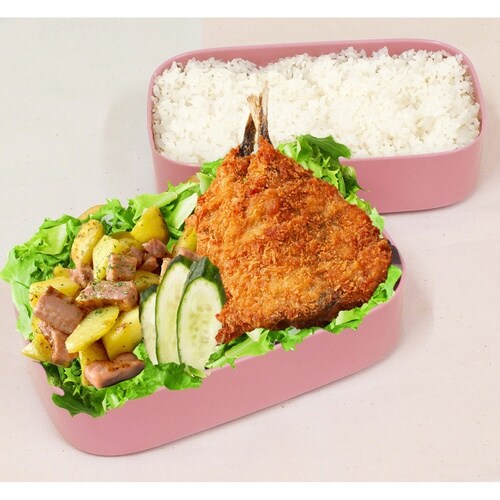 ご飯とおかずが別に盛り付けれる520mlの2段ランチボックスです。 約150gのとても軽いお弁当箱です。 ベルトを縦長方向にかけ1段だけでも使用できます。 パッキンが無く、お手入れも簡単です。 |