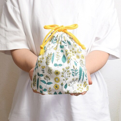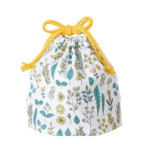 少し大人な花柄の「Hill&Fields(ヒル&フィールズ)」シリーズのミニランチ巾着です。 植物モチーフの線画風のイラストと甘くないカラーリングが魅力で、ランチタイムに華やかにしてくれます。 |