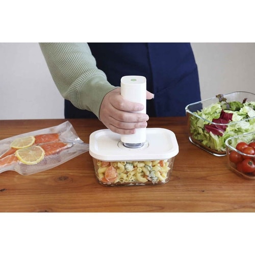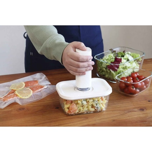 真空保存に対応したお洒落なガラス製キャニスターです。 真空状態にして食材の美味しさを長く保てます。 電子レンジ、食洗機に対応しています。 |