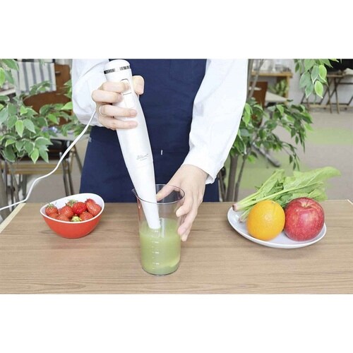 「ブレンダー」「ホイッパー」「チョッパー」を付けかえて、つぶす・まぜる・泡立てる・きざむができる優秀なブレンダーセットです。 回転スピードは2段階で調整できます。 |