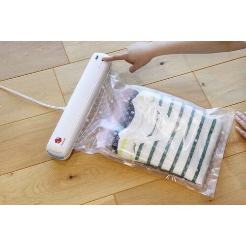 ボタンを押すだけで自動で衣類の圧縮&密封できます。 圧縮の調整ができる手動モードも付いています。 小物や書籍の保存にも便利です。 コンパクトサイズで保管に場所をとりません。 |