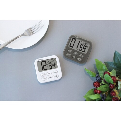 画面の切り替え不要で、タイマーも時計も確認できるキッチンタイマーです。 メイン表示が簡単に切り替えできます。 「10分」「1分」「10秒」単位で簡単にセットができます。 |