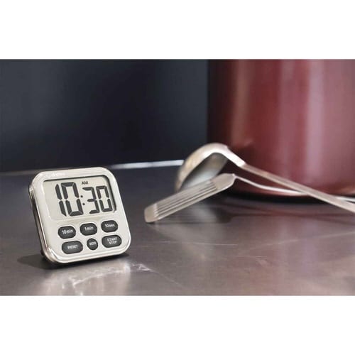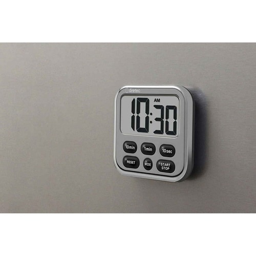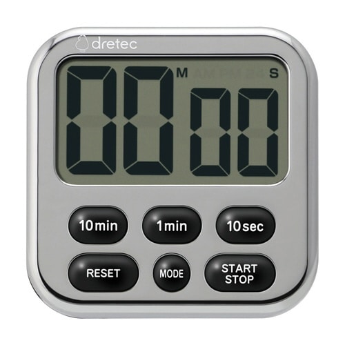 時計機能が付いて大画面で見やすいキッチンタイマーです。 タイマーを使用しない時はモードボタンで時計表示にできます。 カウントアップ・カウントダウン・リピート機能があります。 |