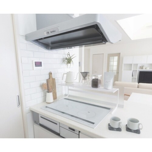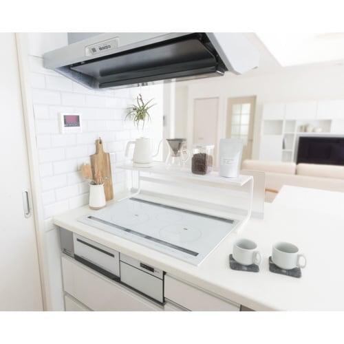 限られた空間を有効活用 鍋などの一時置きスペースとして 調理スペースやシンク奥にも インテリアのように見せる収納にもなる 使いやすいコの字デザイン |