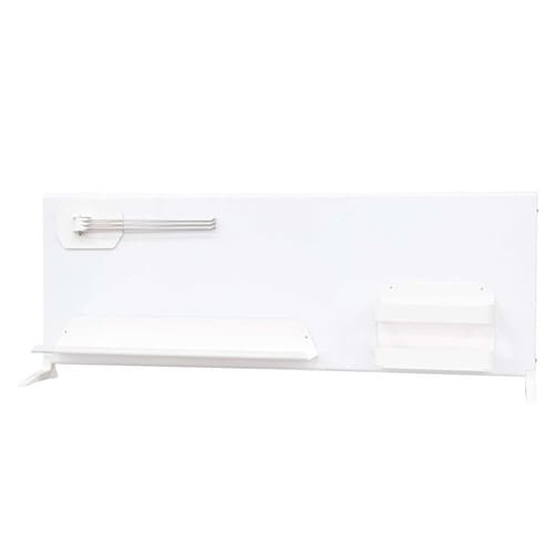 マグネットボード、ロングトレイ、幅広小物ホルダー、ふきん掛けの4点セットです。 マグネットボードは幅90cmのハイタイプです。 壁を傷つけずにすっきり収納できます。 |