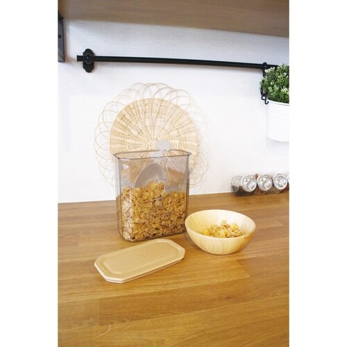 可愛いスヌーピーのシリアルケース 中身が一目で分かるクリアカラー お米計量カップ付きで使いやすい いろんなところにスヌーピーが |
