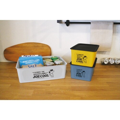 ジョー・クールのプリントがかわいい収納ボックス 別サイズとも積み重ねて便利に使える 水回りでも安心して使えるプラスチック製 キッチンやリビングの小物収納に おもちゃの収納にもぴったり |