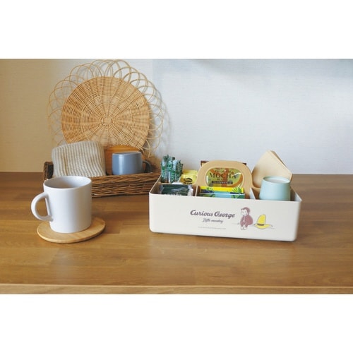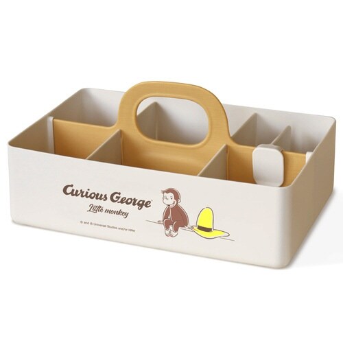 「持って」運べるハンドル付き収納ケースです。 可愛いおさるのジョージのデザインです。 カスタマイズできる仕切りで使い方が広がります。 フレキシブル仕切り付きです。 スタッキング可能です。 |