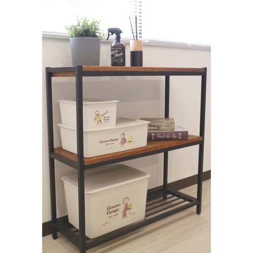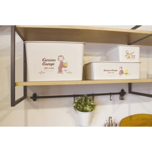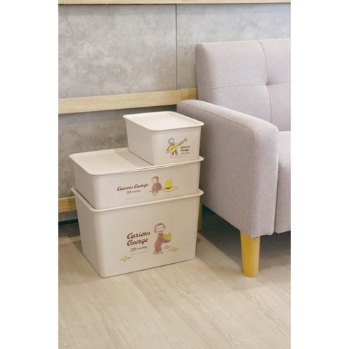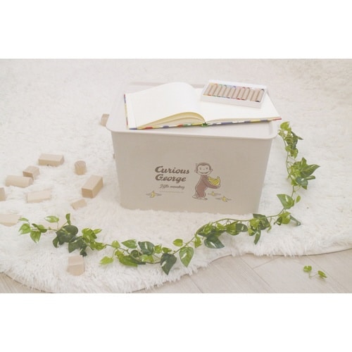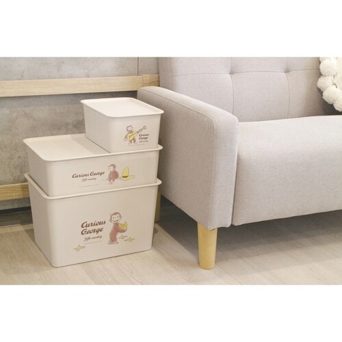 可愛いおさるのジョージが描かれた収納ボックス Lサイズ フタ付きで積み重ねて収納できる カラーボックスに収まるサイズ シリーズで揃えて統一感のある空間に 深型タイプで多用途に使える |