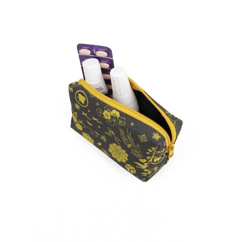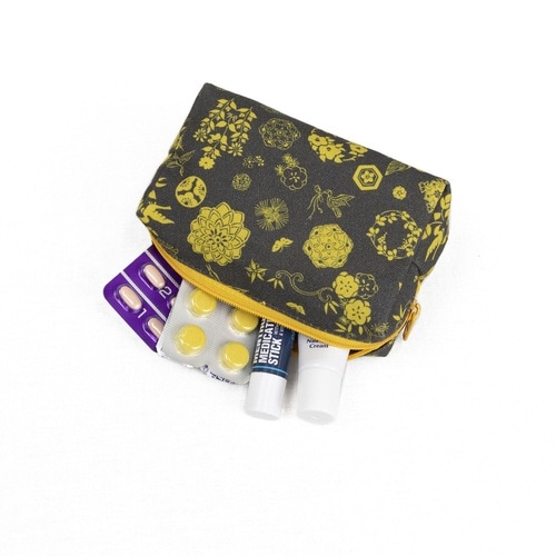 京都の染工場がデザインした、上品で古風な和柄のポーチです。 内ポケット付きで目薬やミニボトルなどコスメ用品を小分け収納できます。 |