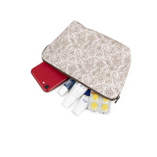 京都の染工場がデザインした、上品で古風な和柄のポーチです。 内ポケット付きで目薬やミニボトルなどコスメ用品を小分け収納できます。 |