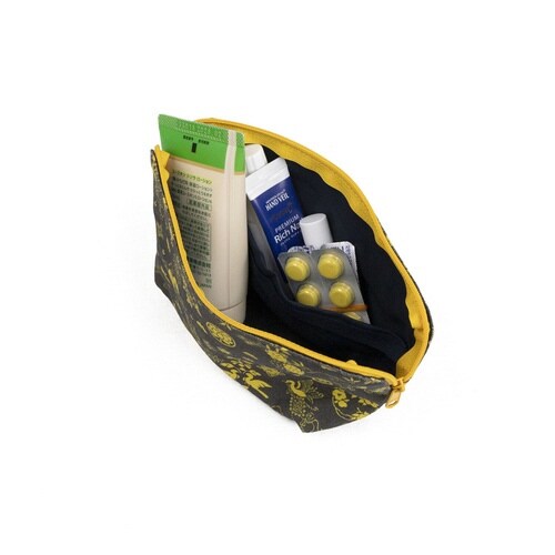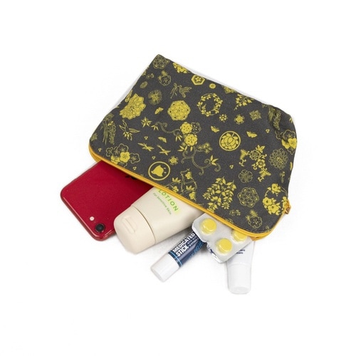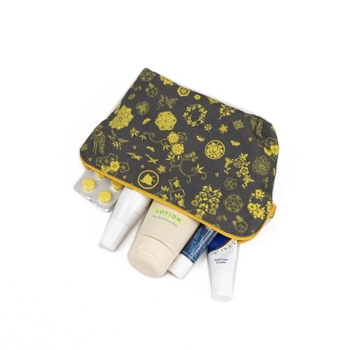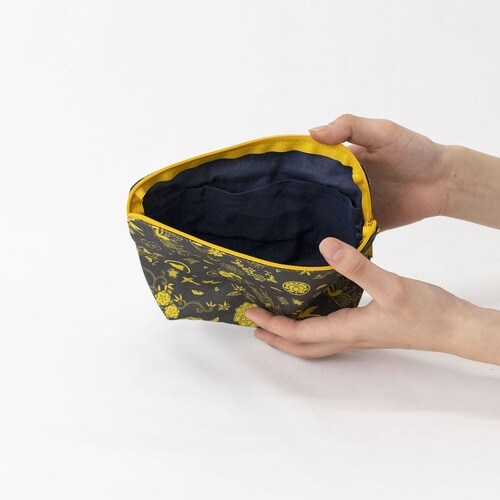 京都の染工場がデザインした、上品で古風な和柄のポーチです。 内ポケット付きで目薬やミニボトルなどコスメ用品を小分け収納できます。 |