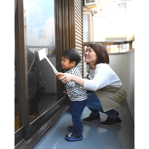 ガラス窓の汚れがこれ一本でピカピカに 水だけ洗剤いらずで簡単キレイ 水滴を拭き取れるワイパー付き 取り外しできるスポンジ |