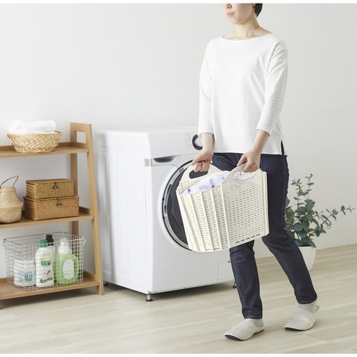 コンパクトに畳んで隙間に収納できるランドリーバスケットです。 わずか厚さ約2.5cmに折り畳めるので、使わないときは洗濯機横などちょっとした隙間に収納できます。 |