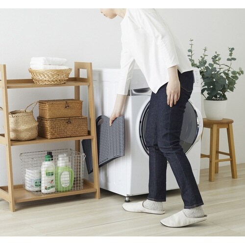コンパクトに畳んで隙間に収納できるランドリーバスケットです。 わずか厚さ約2.5cmに折り畳めるので、使わないときは洗濯機横などちょっとした隙間に収納できます。 |