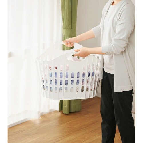 コンパクトに畳んで隙間に収納できる、大容量ランドリーバスケットです。 わずか厚さ約3.5cmに折り畳めるので、使わないときは洗濯機横などちょっとした隙間に収納できます。 |