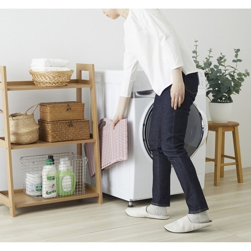 コンパクトに畳んで隙間に収納できるランドリーバスケットです。 わずか厚さ約2.5cmに折り畳めるので、使わないときは洗濯機横などちょっとした隙間に収納できます。 |