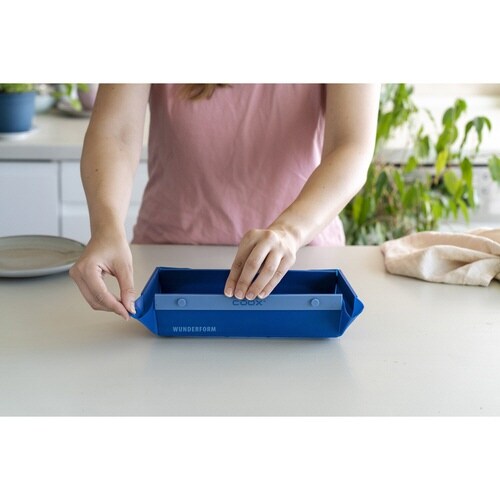組立式のシリコーン焼き型です。 簡単に広げられるから洗いやすく、収納しやすいです。 型を広げられるので焼きたてでも取り出しやすいです。 |