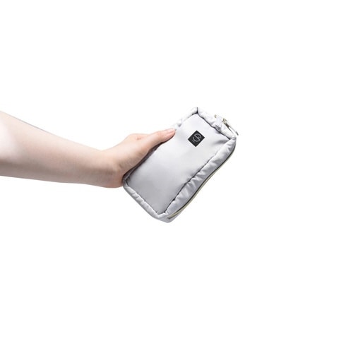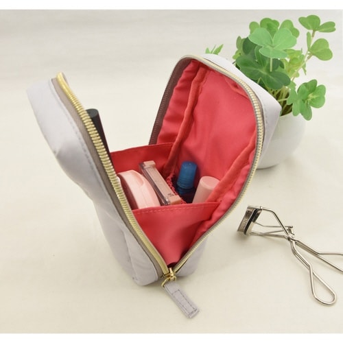 長いメイク道具を立てて使える収納ポーチです。 口が大きく開き自立します。 マチがあるため、中央にファンデーションやパレットタイプのコスメを収納できる優れものです。 |