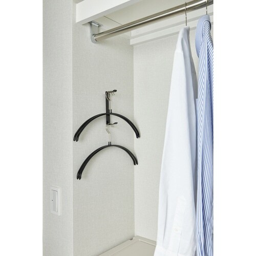 ハンガー収納 ノンスリップハンガーがからみにくい収納フック マグネット ブラック