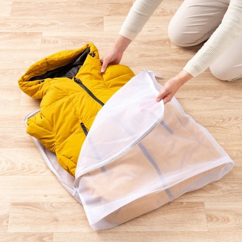 ガバッと開いて取り出しやすい かさばる冬物衣類のお洗濯にぴったり 摩擦に強い裏使いファスナー |