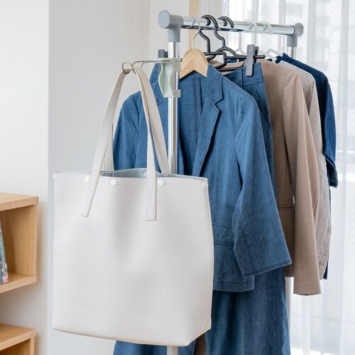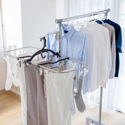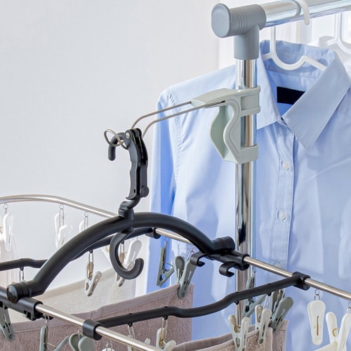 簡単に部屋干しスペースが作れます。 パイプハンガーのスペースが大幅アップします。 工具不要、取り付け簡単です。 ちょい掛けに便利です。 |