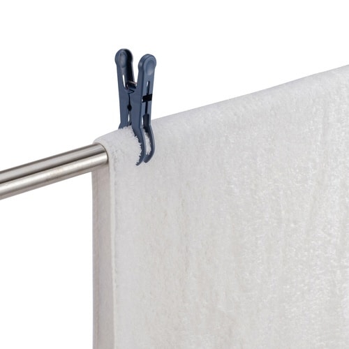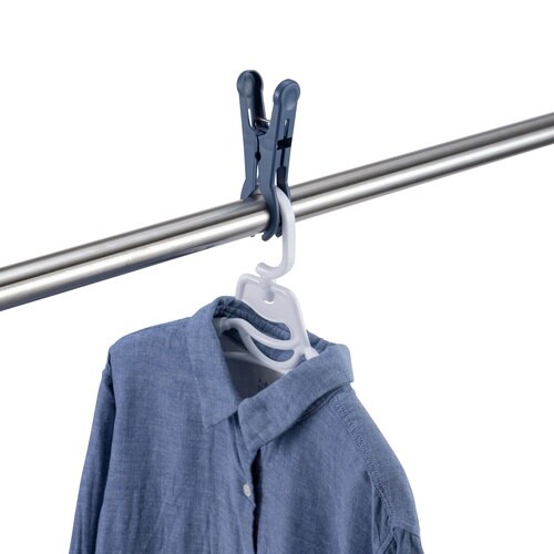 風によるハンガーのズレを防ぐ竿ピンチ4個入です。 洗濯ロープにもお使いいただけます。 持ちやすく開きやすいです。 厚手の洗濯物を干すこともできます。 |