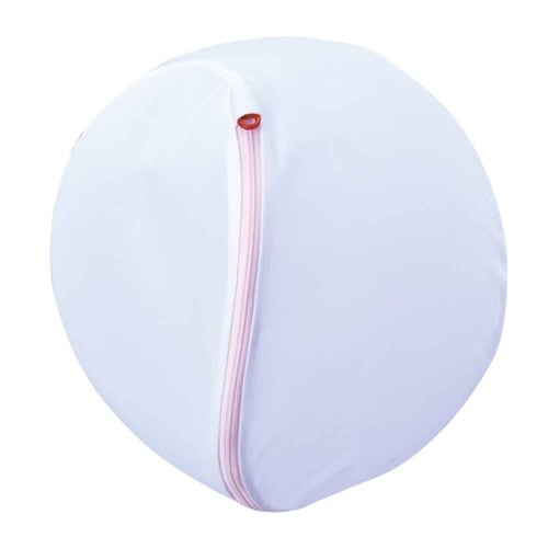 洗濯機で回転しやすい丸型で、大物洗いに最適な洗濯ネット直径約35cmです。 セーターなら1枚、トレーナーなら2枚、バスタオルなら2枚洗えます。 |