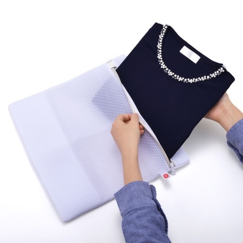 ドラム式洗濯機のたたき洗いに適した洗濯ネットです。 飾りボタンやビジューが付いた大切なおしゃれ着を洗うのにピッタリです。 やわらかい厚みのあるクッションメッシュ生地を採用しています。 |