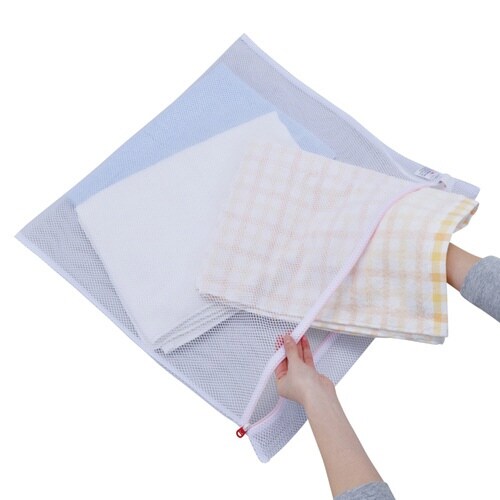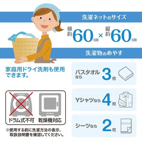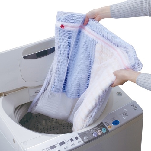 丈夫で水通しの良いレギュラーメッシュを使用した大物洗い用洗濯ネットです。 タテ型洗濯機・乾燥機に対応しています。 バスタオルなら3枚、ワイシャツなら4枚、シーツなら2枚洗えます。 |