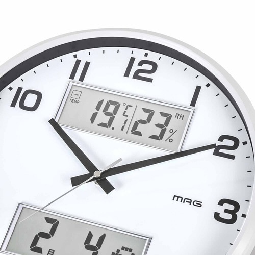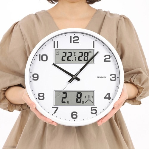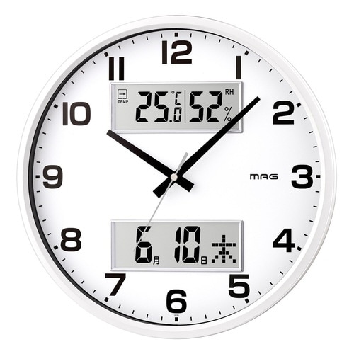 日常生活に便利な温度・湿度・カレンダー表示機能付きの掛け時計です。 すべての情報が一目でわかります。 秒針が連続してスムーズに動くので、就寝時に快適です。 |