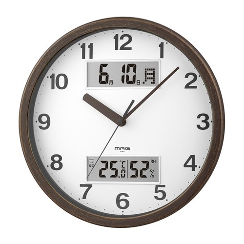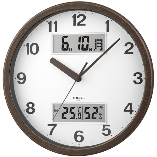 時刻、日付、温度、湿度が一目で分かります。 木目調の塗装がナチュラルな印象を与えます。 カチカチ音がしないので、寝室など静かな場所でのご使用にもおすすめです。 |