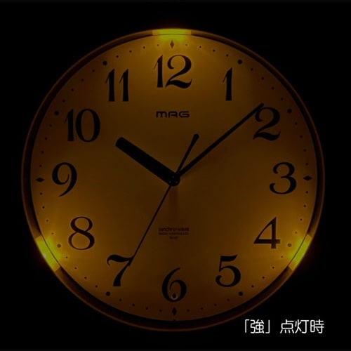 掛け時計 電波時計 直径30cm 自動点灯 灯 ライト付