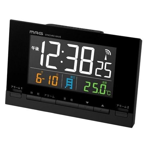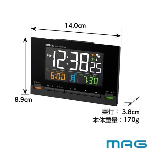 目覚まし時計 カラーデジット 電波時計 デジタル時計 MAG 温度計付き